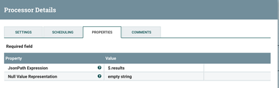 Step 2: SplitJSON: Split on $.results to split array of JSON.
