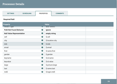 For my use case, I wanted to split one JSON file that had 5,000 records into 5,000 CSVs. You could also through a MergeContent processor in there and make one file. My data came from the excellent test data source, RandomUser. They provide a free API to pull down data, https://api.randomuser.me/?results=5000&format=pretty. I chose pretty to get formatted JSON with multiple lines which is easier to parse.