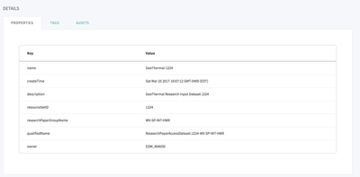 {"requestId":"qtp84739718-15 - 827d5151-a6fb-4ccb-909f-f4ac5f8d8f26","entities":{"created":["40dc03dc-16d6-4281-826d-c4884cd1dad5"]},"definition":{"jsonClass":"org.apache.atlas.typesystem.json.InstanceSerialization$_Reference","id":{"jsonClass":"org.apache.atlas.typesystem.json.InstanceSerialization$_Id","id":"40dc03dc-16d6-4281-826d-c4884cd1dad5","version":0,"typeName":"ResearchPaperAccessDataset","state":"ACTIVE"},"typeName":"ResearchPaperAccessDataset","values":{"name":"GeoThermal-1224","createTime":"2017-03-25T20:07:12.000Z","description":"GeoThermal Research Input Dataset 1224","resourceSetID":1224,"researchPaperGroupName":"WV-SP-INT-HWX","qualifiedName":"ResearchPaperAccessDataset.1224-WV-SP-INT-HWX","owner":"EDM_RANDD"},"traitNames":[],"traits":{}}}