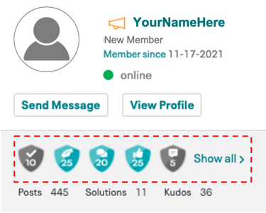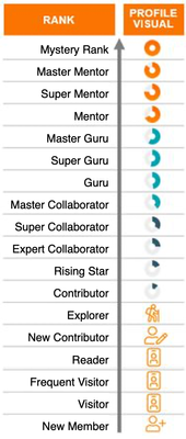 The Reputation Program comprises community ranks, badges, and leaderboards. The community platform acknowledges your contributions and engagement by asking questions, replying to others, giving and receiving kudos, and providing valued solutions.