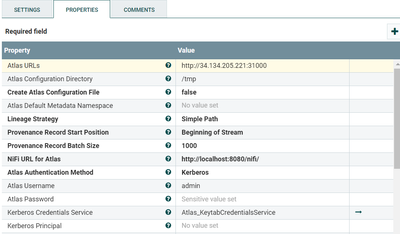 following the resolution thread Re: How to report NiFi lineage to Atlas I am now able to use the Atlas lib of Nifi called "ReportLineageToAtlas". I configured the settings as the following (Atlas URLs is changing day by day, after the restart of the servers) :