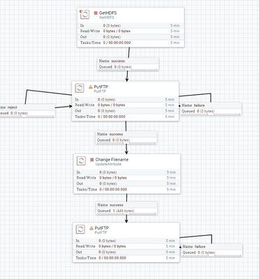 In this method we only process the files that got successfully stored into Remote Location by using First PutFTP processor(as we are using only success from FirstPutFTP to updateattribute).For all the other relations like rejected or failed you can auto terminate or you can retry them to store.