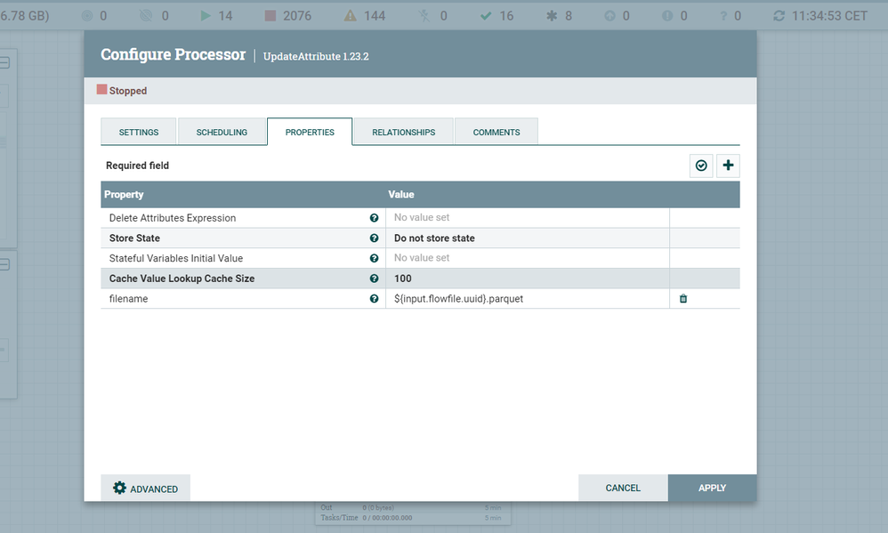 I am in the process of transferring data from an Oracle database to HDFS, formatted as Parquet. The workflow, as depicted in the attached screenshot, employs the GeneratedTableFetch method for data ingestion in segments. Additionally, the ExecuteSQL processor runs the generated queries, UpdateAttribute is utilized to add an attribute, and QueryRecord is used to introduce a new column in the flow files.