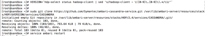 git clone https://github.com/Symantec/ambari-cassandra-service.git /var/lib/ambari-server/resources/stacks/HDP/$VERSION/services/CASSANDRA