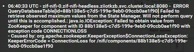 Hi guys! In the QueryDatabaseTable processor configuration, the Maximum-value Columns parameter specifies a column from the database table. The database polling frequency is 5 seconds, but it happens that new data in the table does not have time to appear after 5 seconds and probably due to this the following error appears, but the processor is working and when data appears, it takes it, but this error annoying, can it be avoided somehow?