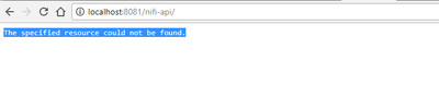The URL you are trying to reach is not a valid end-point so the "The specified resource could not be found" is the expected response. If you trying to access the NiFi UI, the proper URL would be http://localhost:8081/nifi