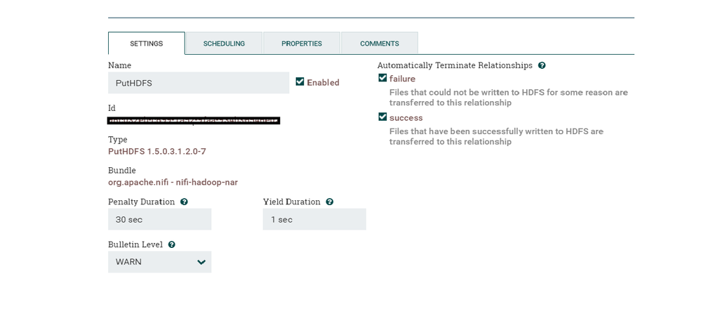 But for failure relationship, the file is not put to HDFS and you don't handle the failure.