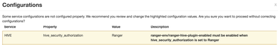 One additional note (see second screenshot), I am seeing the below configuration warning in Hive (I'm unsure whether this is related).
